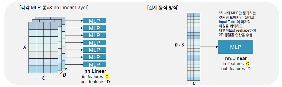 - Hidden dimension C 혹은 sequence length S를 증가시킴에 따라 네트워크의 파라미터 수가 과도하게 증가하는 것을 방지하고 메모리를 절약하는 효과가 있음.