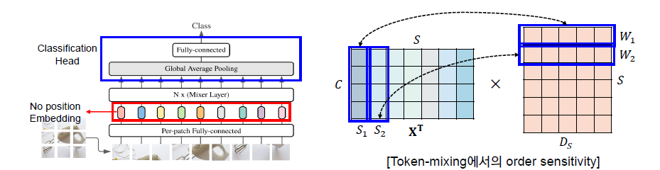 - Token-mixing MLPs are sensitive to the order of the input tokens (position-awareness)