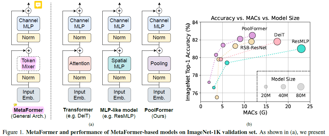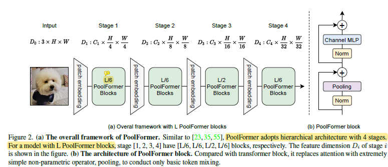 - poolformer라는 도구가 과연 기존 transformer-like model 대비해서 이미지라는 structure에 대한 prior가 너무 많이 가정되어 있는 것은 아닌지