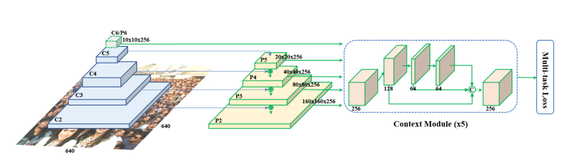 - retinanet에서는 5개의 face landmark annotation을 추가해줌. (extra label이 추가 → extra-supervision)