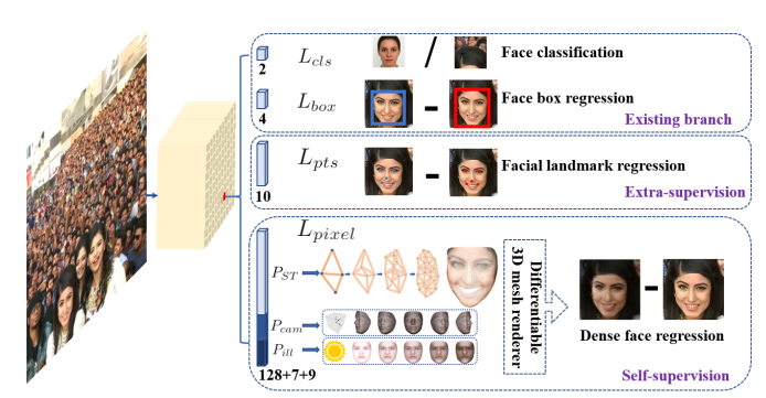 - pixel-wise 3D shape face information을 예측, 해당 브랜치는 supervised branch와 병렬적으로 구성